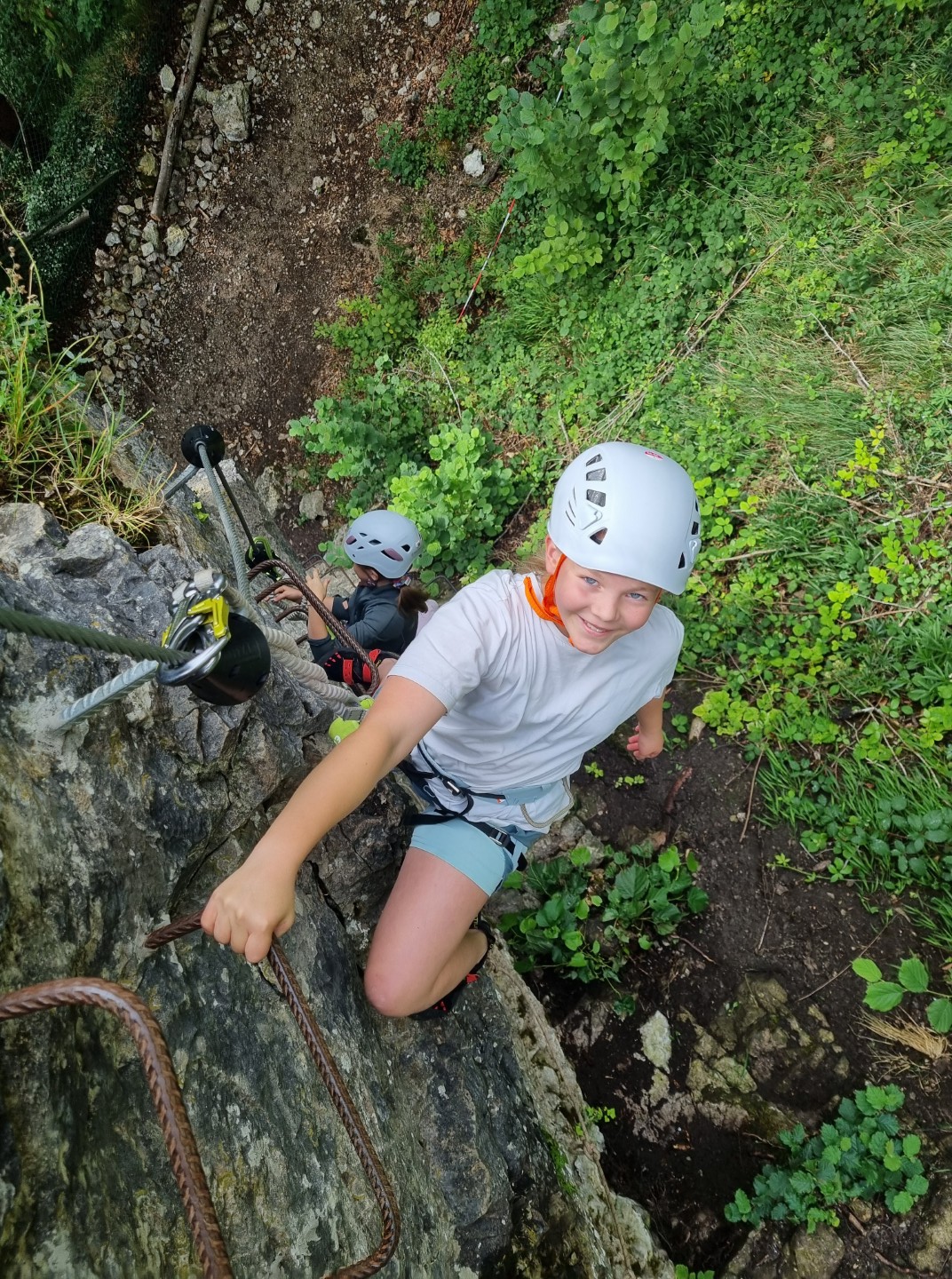 - multi-pitch climbing or via ferrata, possibly swimming, adventure games,
